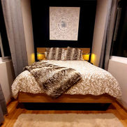 This lovingly curated Eco retreat features a plush queen bed and plenty of eating options to soak up the morning sun and relax int he privacy of your own entire home, making it perfect for a cozy couples getaway or a soulful gathering of 3, sleeping a friend or child {over 5 years old only}.